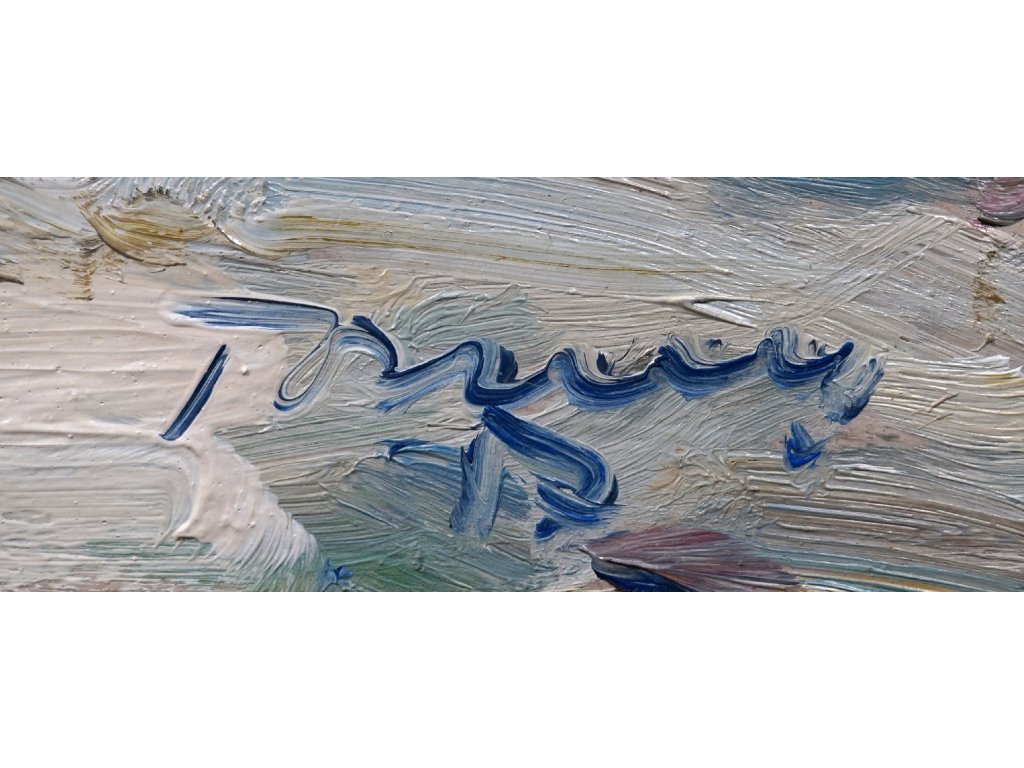Technika: Olej na kartonuVýška: 26 cm, šířka: 52 cm, rámování: 47 x 73 cmStav: DobrýSignatura: signováno