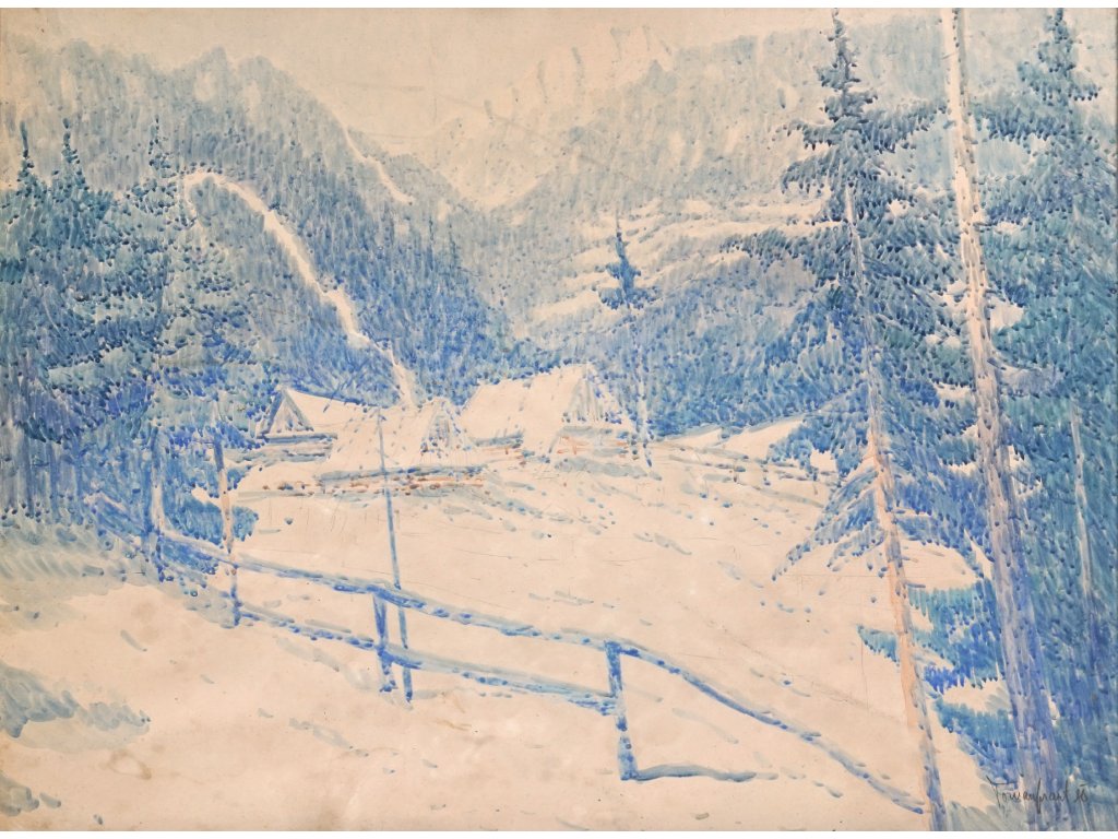 › Obrazy › akvarel › František Toman - Zima na horách ❄