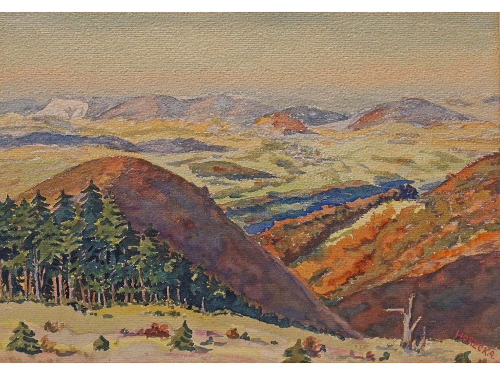 Technika: AkvarelVýška: 23 cm, šířka: 31 cm, rámování: 36,5 x 43 cmStav: DobrýSignatura: signováno