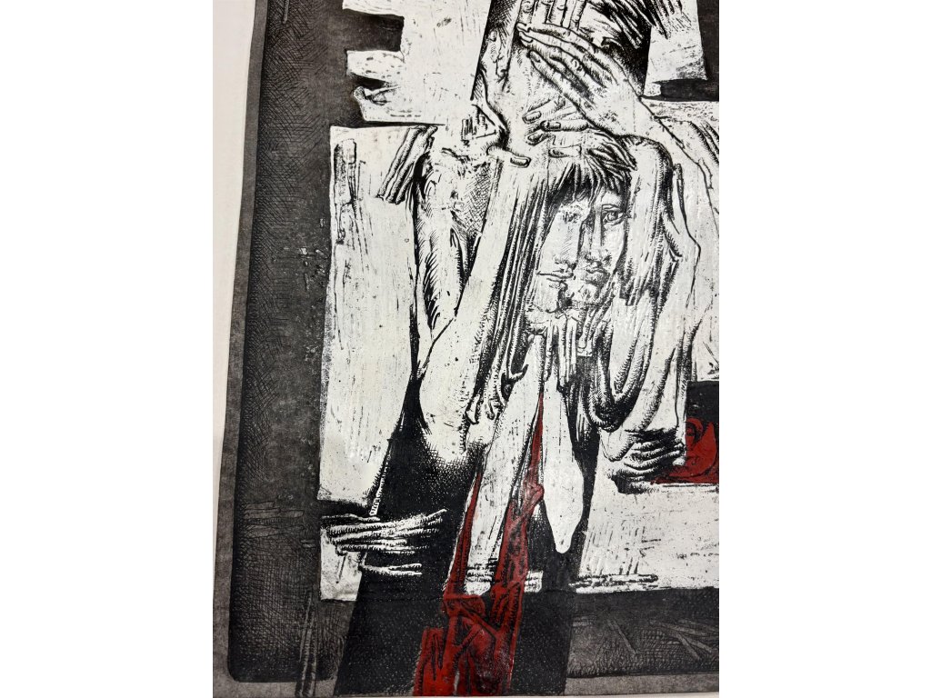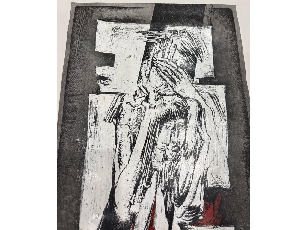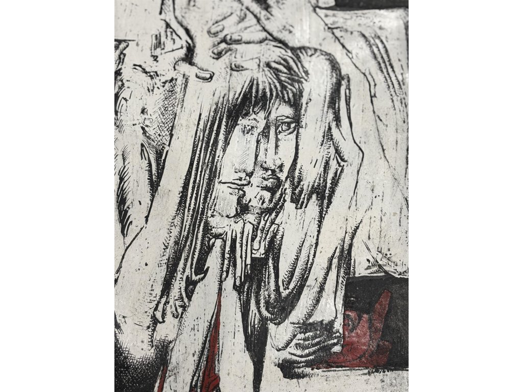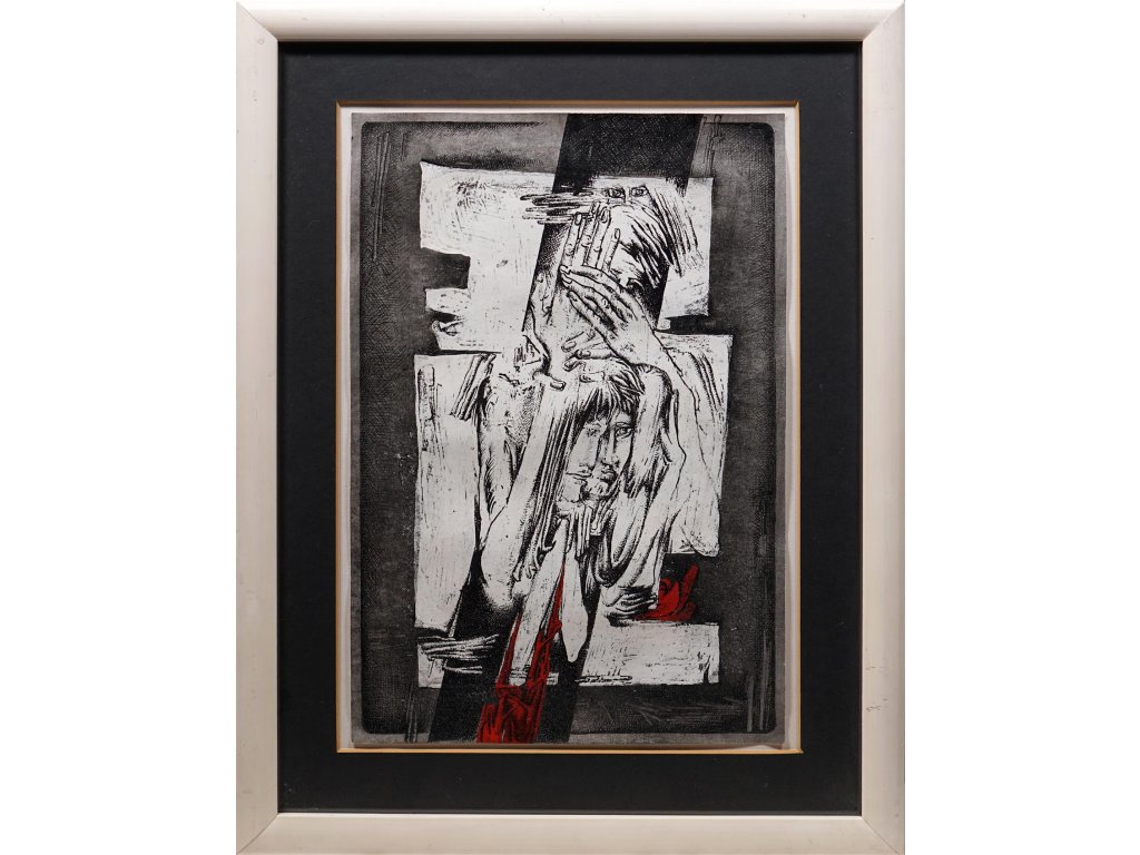 Kresba tuší kombinovaná s akrylovou barvou.Technika: Kombinovaná technika/papírVýška: 39 cm, šířka: 27 cm, rámování: 51,5 x 39,2 cmStav: NepoškozenoSignatura: signováno