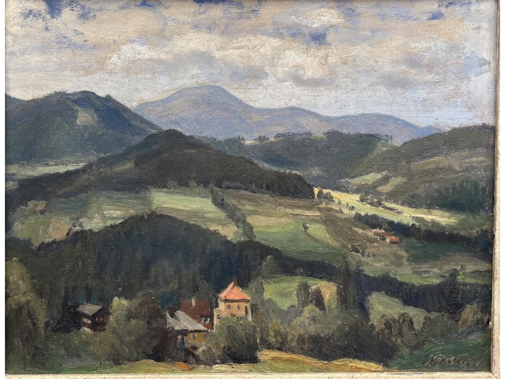 Technika: Olej na kartonuVýška: 35 cm, šířka: 45 cm, rámování: 52,5 x 62 cmStav: DobrýSignatura: signováno
