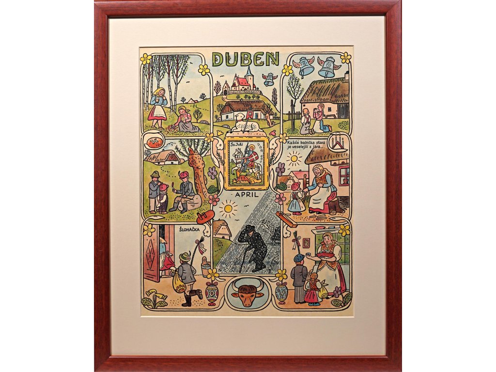 Starý tisk, nově rámováno. Ze souboru kalendáře od Josefa Lady, vydaného v 60. letetech.Technika: TiskVýška: 36 cm, šířka: 28 cm, rámování: 50 x 41 cmStav: Dobrý