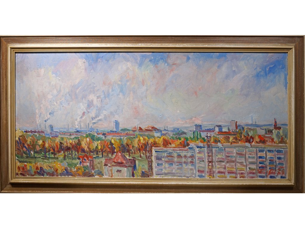 Technika: Olej na malířské lepenceVýška: 61 cm, šířka: 131 cm, rámování: 75,5 x 146 cmStav: DobrýSignatura: signováno