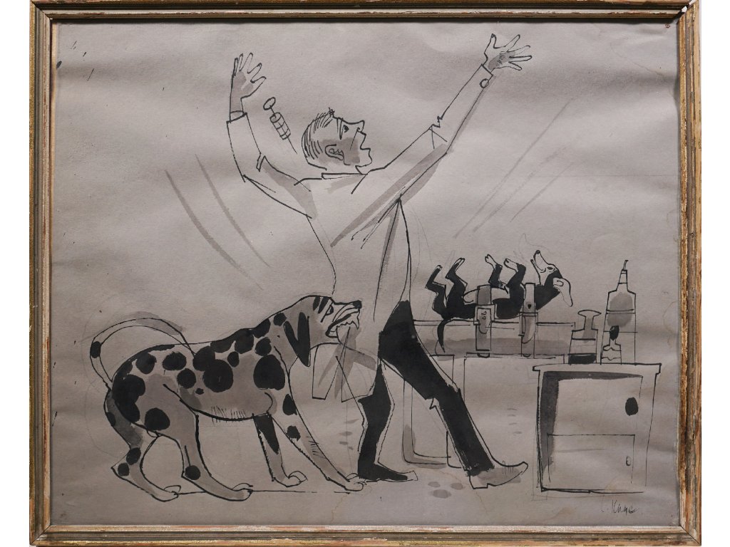 Technika: Kresba tušíVýška: 45 cm, šířka: 55 cm, rámování: 47,5 x 57,5 cmStav: Mírně poškozenoSignatura: signováno