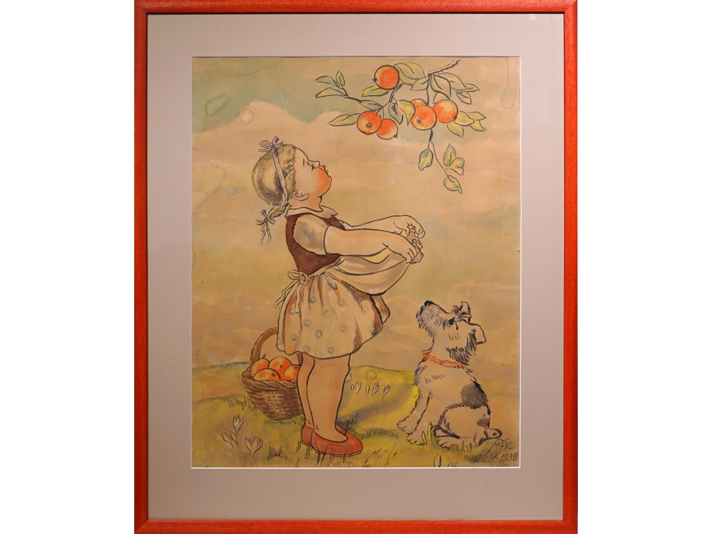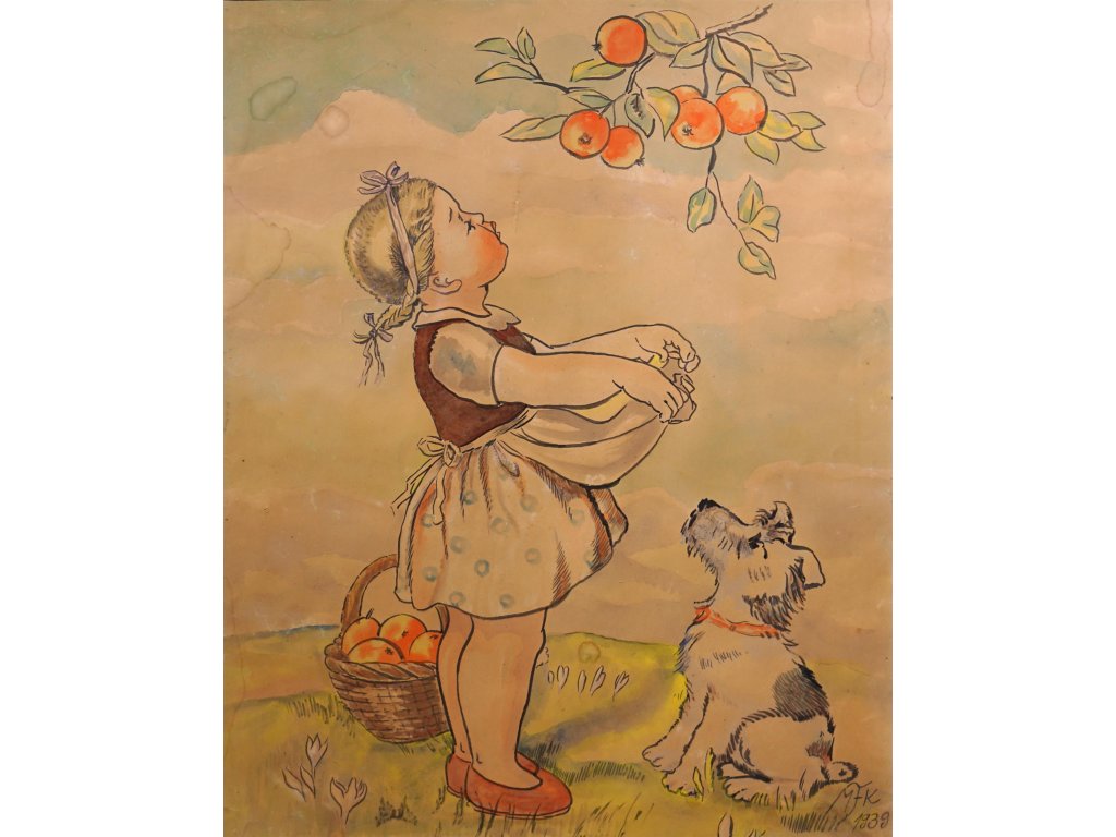 › Obrazy › akvarel › Marie Fischerová Kvěchová - Čekání na jablíčka