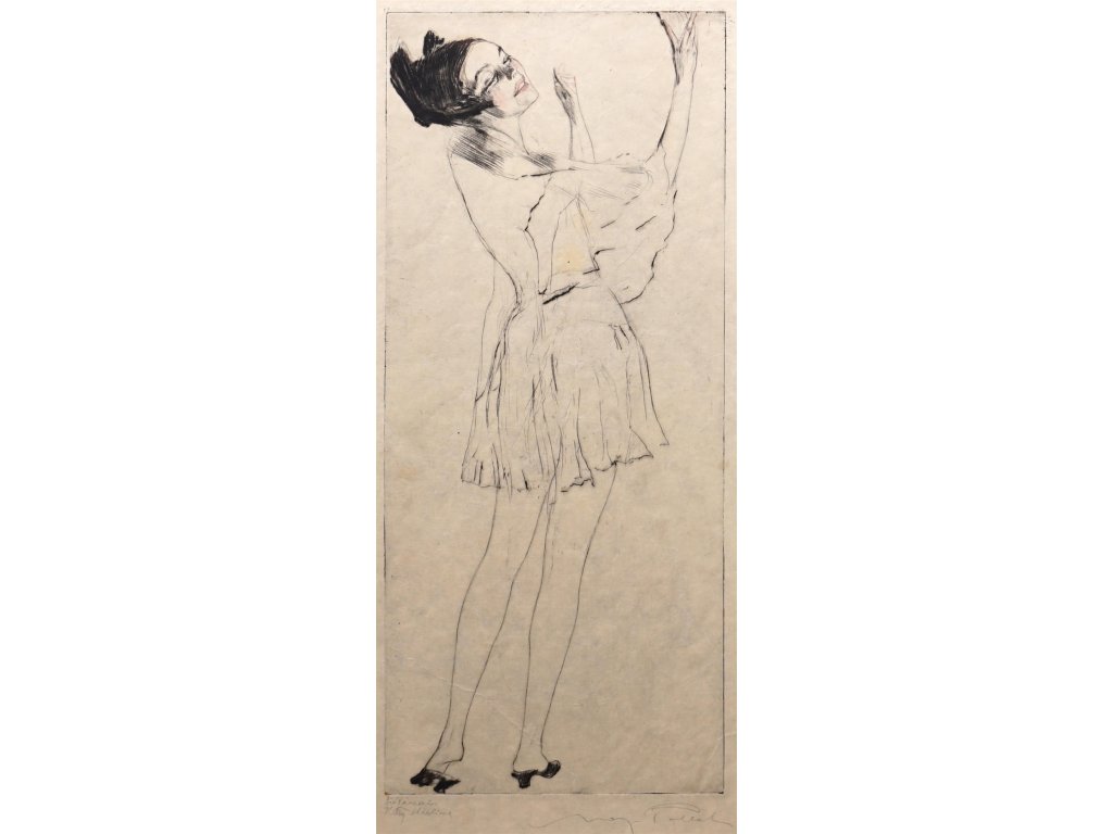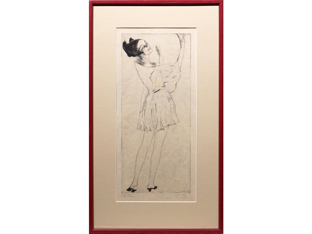 Technika: Suchá jehlaVýška: 35,8 cm, šířka: 15,2 cm, rámování: 52,5 x 30,5 cmStav: DobrýSignatura: signováno