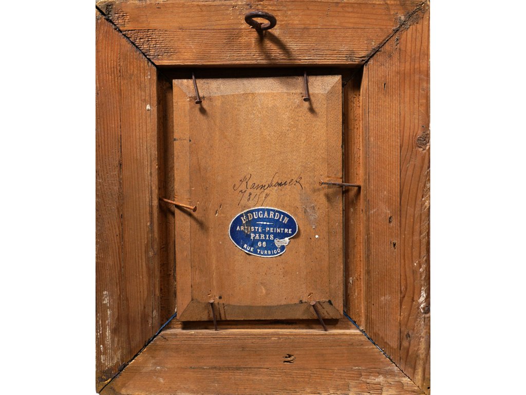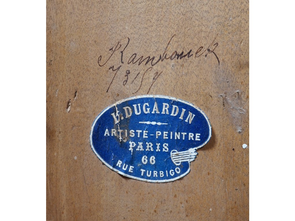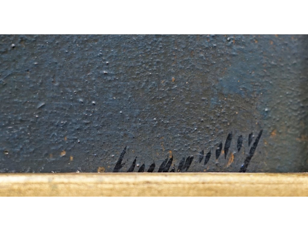 Technika: Olej na desceVýška: 23 cm, šířka: 10 cm, rámování: 23 x 20 cmStav: DobrýSignatura: signováno