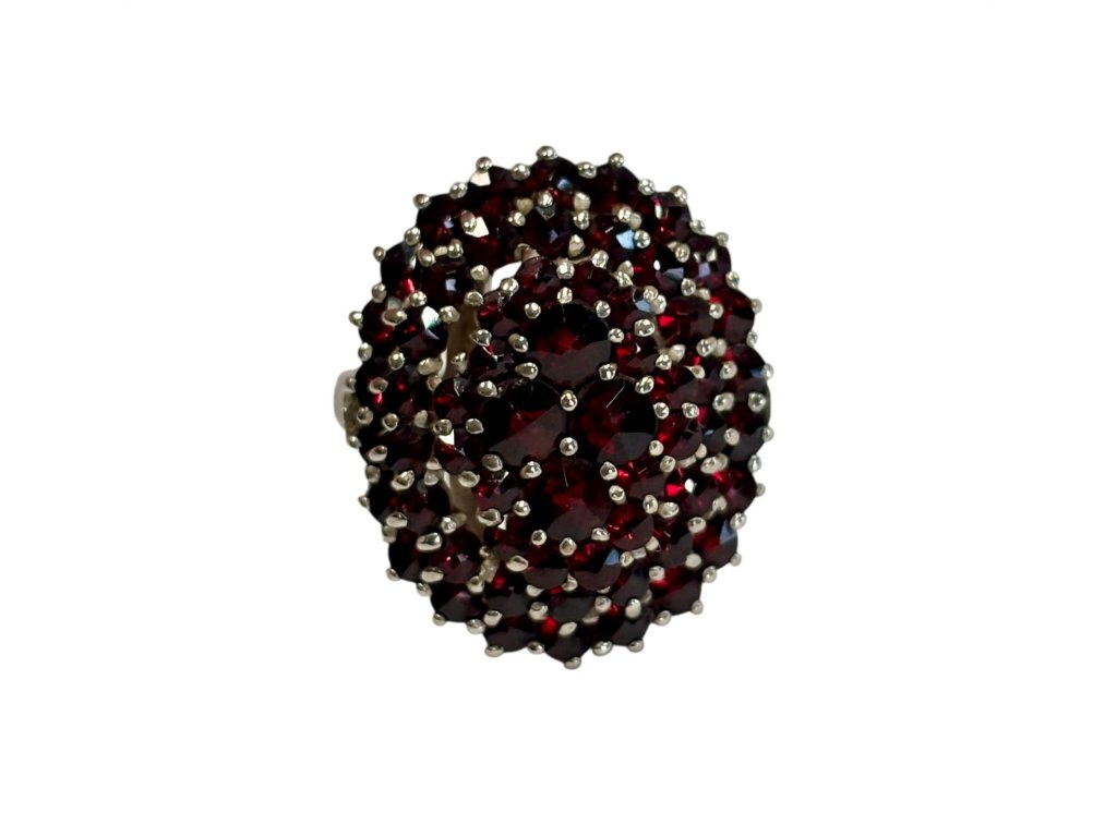 Váha prstenu 5,81 g / 900 / 1000. Velikost prstenu č. 55,5Puncováno platným puncem. Značeno český granát Turnov.