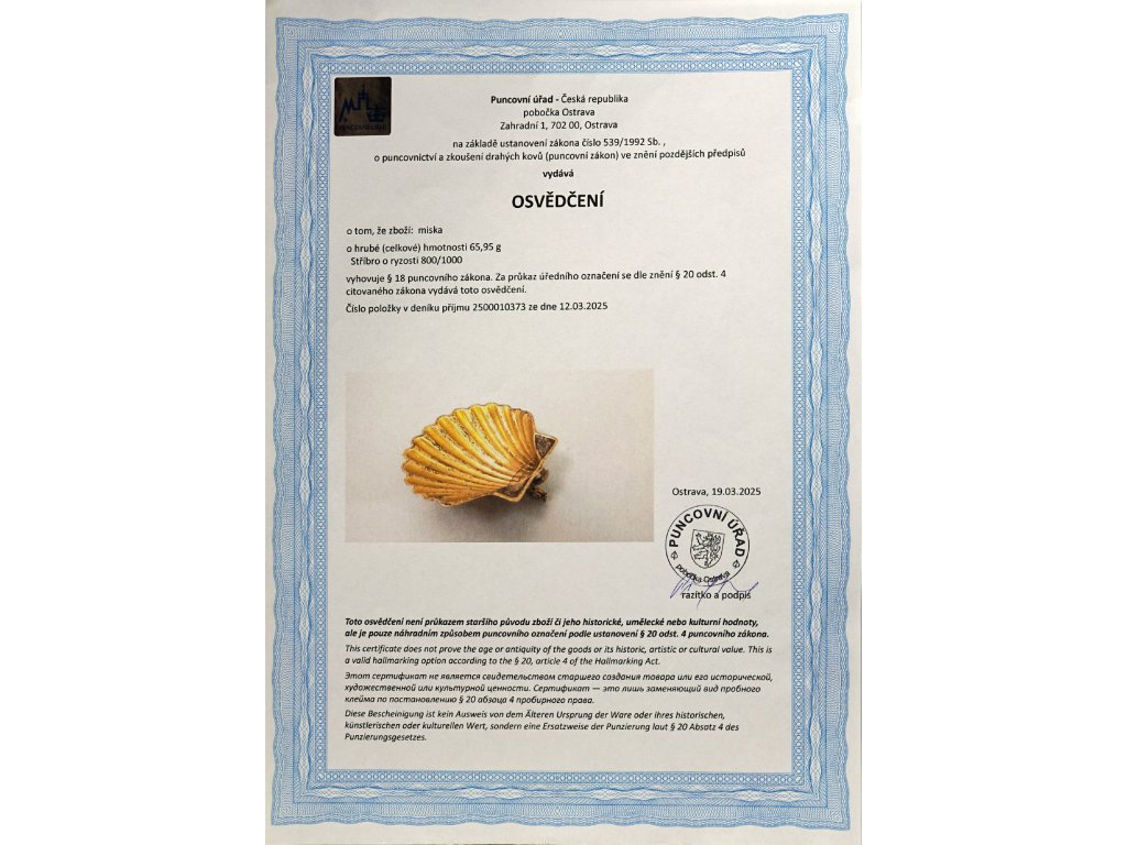 Zlacené stříbro. Bez poškození. Váha 65,95 g / 800.